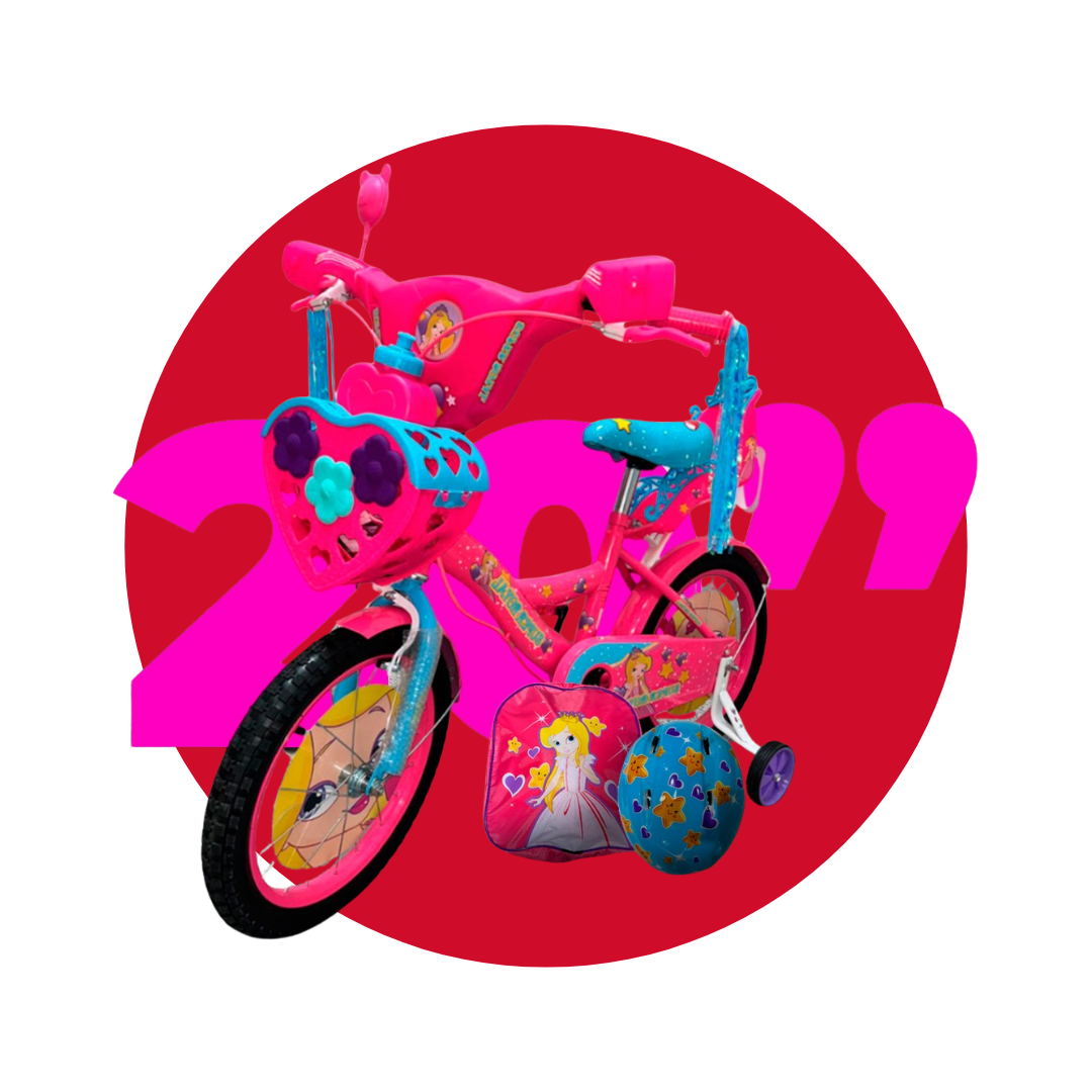 -Aro 20 -Canasta de corazon -Musical -Ruedas de entrenamiento -Adornos COLORES: ROSADO LILA, ROSADO TURQUESA