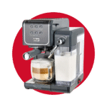 - Panel táctil con funciones automáticas para espresso, cappuccino, latte y limpieza fácil