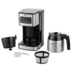 La Cafetera programable de 8 tazas con pantalla táctil de Oster® es un complemento elegante para cualquier cocina. Su jarra térmica te permite mantener el café caliente hasta por 2 horas. Disfruta de la óptima funcionalidad para elegir la hora de preparación y qué tipo de café deseas, simplemente tocando la pantalla táctil. Incluye una cuchara medidora para facilitar la adición de la cantidad correcta de granos de café y también un filtro reutilizable para mayor ahorro y menos desperdicios.