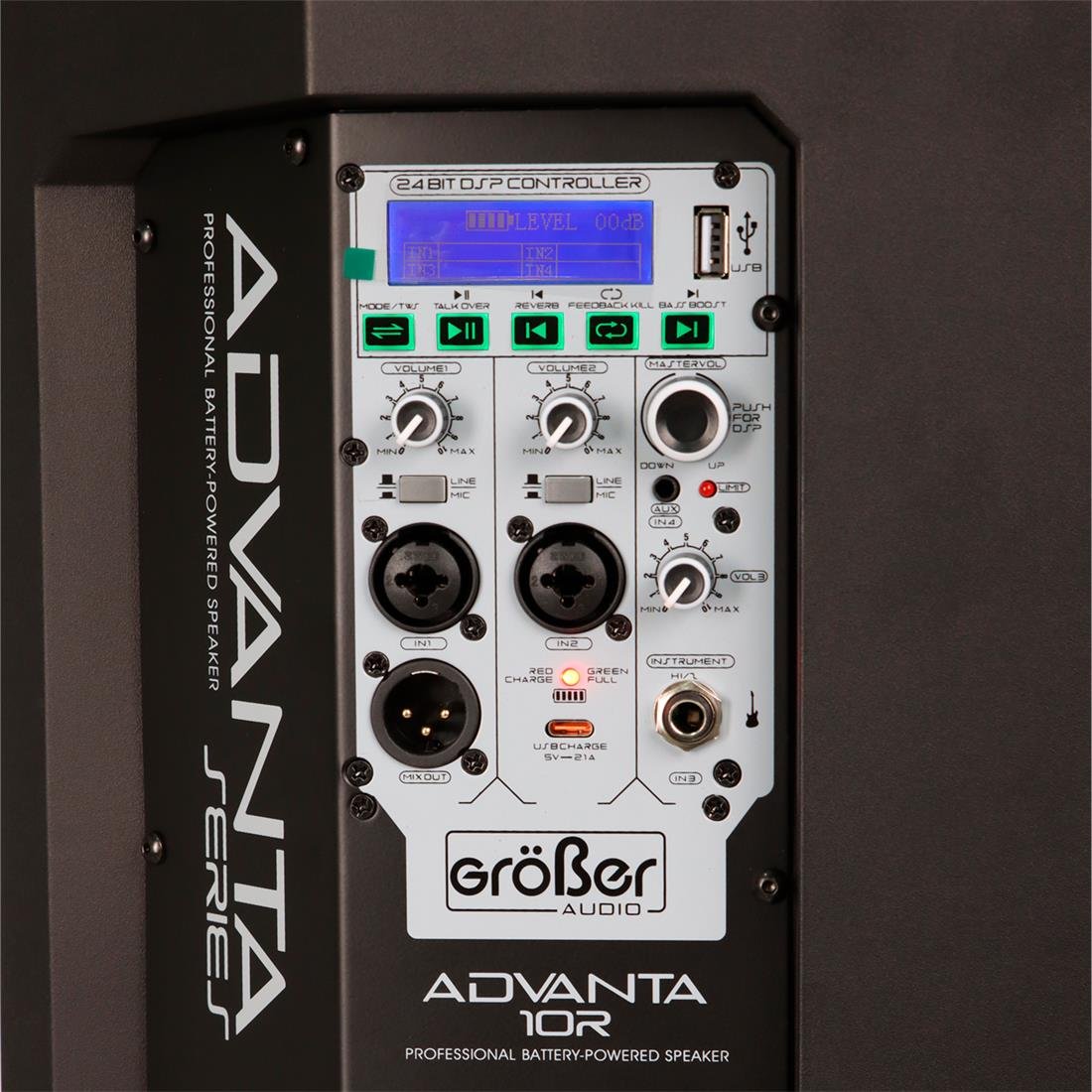 La CAJA ACTIVA GROBER ADVANTA de 300W es un sistema de audio profesional recargable con amplificación Clase D y procesamiento DSP. Diseñada con un robusto parlante de 10″ y un driver de titanio, ofrece una respuesta de frecuencia extendida desde los 55 Hz. Gracias a sus funciones inteligentes como el eliminador de feedback y la tecnología Bluetooth TWS, es la herramienta ideal para músicos y oradores que requieren calidad de estudio en un formato portátil e inalámbrico.