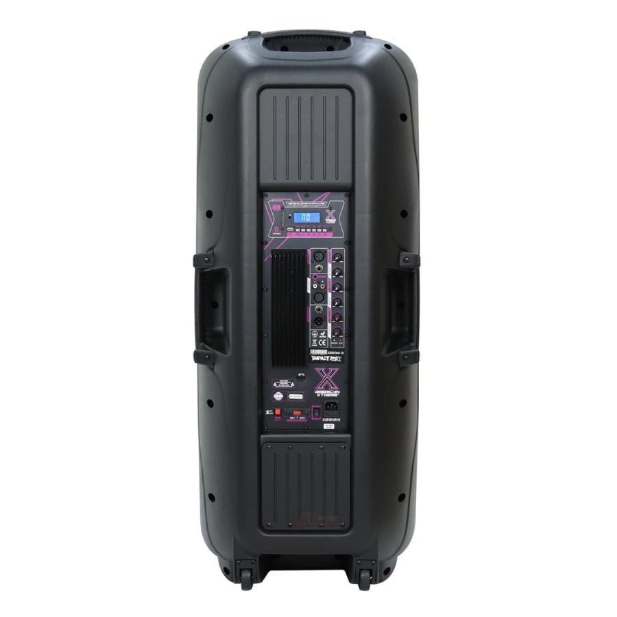 La Caja Amplificada Doble Impact 15X es un sistema de sonido portátil de 15 pulgadas con potencia 180W RMS y 150,000W PMPO, diseñado para eventos sociales, fiestas o presentaciones en espacios medianos. Incluye luces LED audiormíticas, conectividad Bluetooth TWS (para emparejamiento dual), entradas para micrófono y AUX, y controles de ecualizador paramétrico de 2 bandas. Fabricada en caja de plástico resistente e incluye micrófono con cable, ideal para DJs emergentes o uso en exteriores.