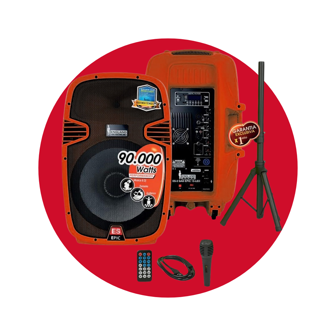 La Caja Amplificada England Sound 15″ ES-2GADEPIC-R es un potente sistema de audio de Clase AB y 150W RMS, diseñado con Iluminación RGB y conectividad Bluetooth, ideal para eventos.