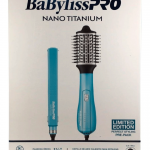 El cepillo secador Babyliss Pro incluido en este combo presenta un diseño ovalado de 2.5″ (64mm), generador de iones, tres configuraciones de temperatura (incluyendo aire frío), cerdas mixtas de jabalí y nylon, y cable giratorio.