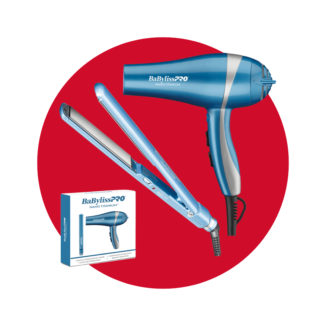 Combo Secador Ionico 2000w + plancha ultradelgada 1» Celeste BabylissPRO Nano Titanium