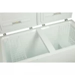 Congelador SMC SMCCG15HB, con una capacidad de 420 litros, diseñado para uso comercial o doméstico intensivo. Cuenta con sistema Defrost, función Dual (congela y enfría), y un funcionamiento silencioso. Incluye 2 canastas removibles de alambrón blanco, llave en la puerta para mayor seguridad, y refrigerante ecológico R600a. Con eficiencia energética clase A, termostato ajustable, y luz interior LED, es ideal para almacenamiento masivo. Sus dimensiones son 83 cm de alto x 142 cm de ancho x 75 cm de profundidad, y tiene un peso de 65 kg.