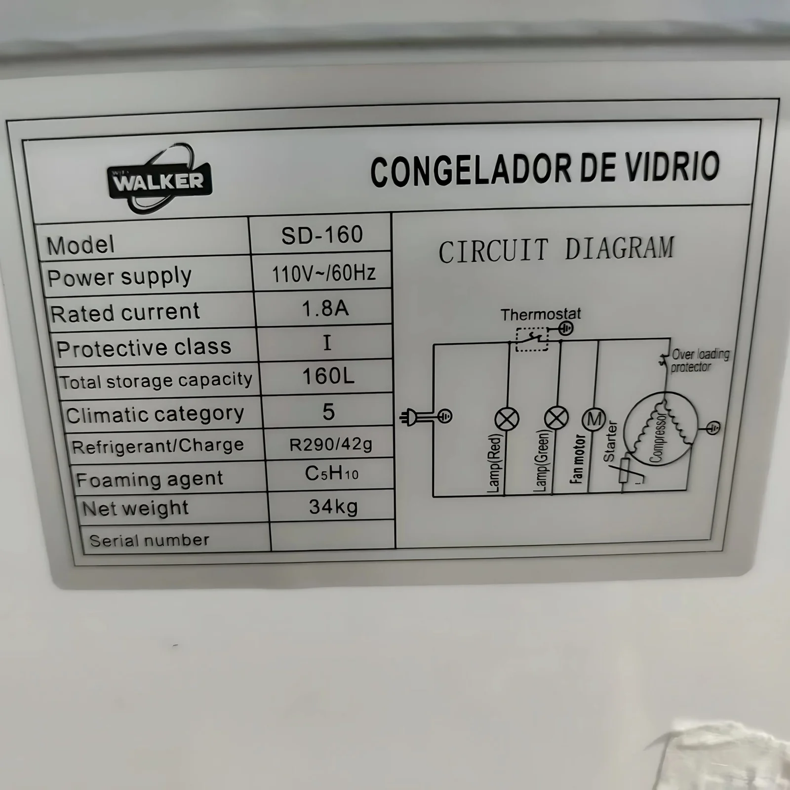 CONGELADOR WALKER TAPA DE VIDRIO 160 LITROS