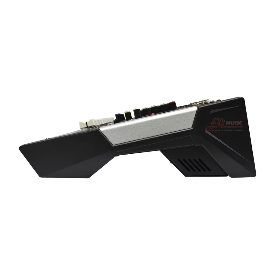 Control de Mezcla de Precisión: Cada canal cuenta con faders logarítmicos de 60mm, ecualizador de 3 bandas y controles dedicados de ganancia, auxiliar, efectos y paneo para un ajuste sonoro detallado.