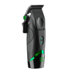 Esta cortadora cuenta con un motor de dos velocidades (7 500 RPM alta / 6 800 RPM baja), cuchilla de desvanecido Black Titanium MIM, palanca estirada de 5 posiciones para degradados precisos, y sistema de carga inalámbrica compatible (almohadilla no incluida), además de apagado automático cuando se coloca sobre la base. También integra una pantalla LED que indica la batería y viene con doble batería de alta capacidad de hasta 4 horas de autonomía. Su diseño compacto y ergonómico, con agarre de goma y ranuras para los dedos, maximiza la comodidad en uso prolongado.