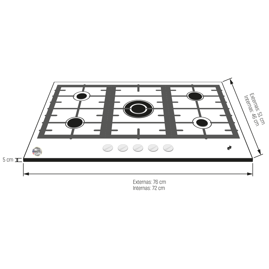 - Hornillas: 1 Jumbo, 1 Grande, 2 Medianas, 1 Pequeña