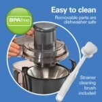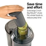Ya sea un jugo naranja vigorizante o un verde rico en nutrientes, disfrutar de un vaso de jugo casero recién exprimido nunca ha sido tan fácil. Con su amplio conducto y potente motor, el extractor de jugos Hamilton Beach Big Mouth procesa rápidamente frutas y verduras con poco tiempo de preparación. Prensado en frío vs. jugo tradicional. Exprima con confianza sabiendo que las pruebas de laboratorio demuestran que el exprimidor Big Mouth prácticamente no transfiere calor al jugo. Además, análisis de terceros no muestran una clara ventaja nutricional para el jugo masticado y prensado en frío.