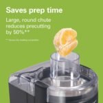 El conducto grande y redondo de 2,4″ de este exprimidor de frutas y verduras te ahorra tiempo y esfuerzo de preparación porque admite más productos y piezas más grandes con menos precorte.