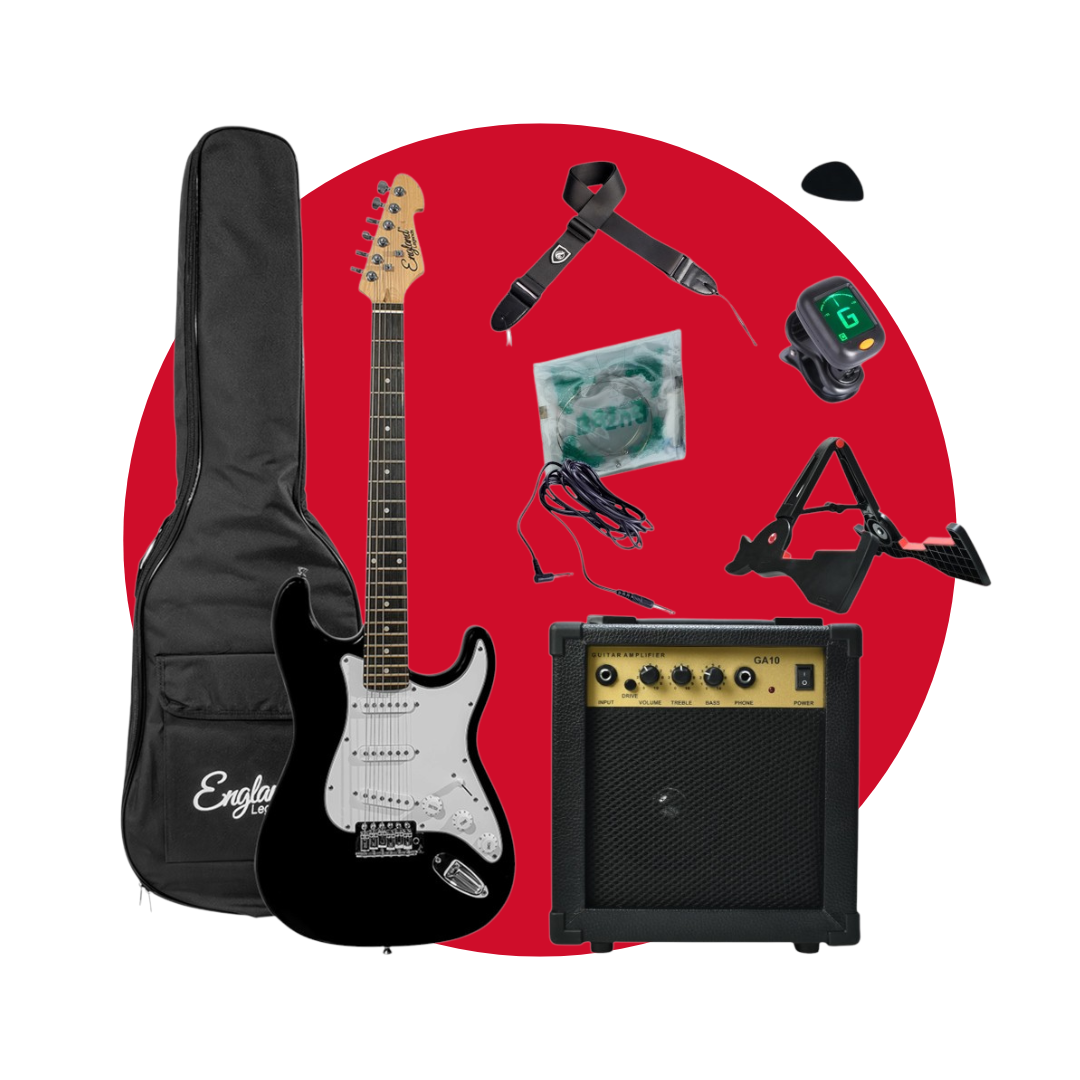 La Guitarra Eléctrica mástil de arce 22 trastes 3x bobina simple ENGLAND LEGENDS EL-GEC 02 NG-SET es la opción ideal para músicos en formación y aficionados que buscan calidad y versatilidad. Su diseño tipo Stratocaster ofrece un cuerpo cómodo y ligero, óptimo para tocar diferentes géneros musicales. Con 3 pastillas de bobina simple, esta guitarra permite una amplia gama de tonos, convirtiéndola en un instrumento perfecto para exploraciones sonoras. El vibrato con palanca incluida añade un nivel adicional de expresión y estilo a tu interpretación.
