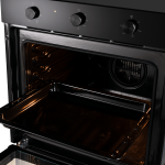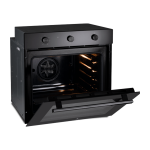 Horno empotrable eléctrico Indurama HEI-75EN, con una capacidad de 75 litros y acabado en negro. Funciona con 220V/60Hz y tiene una eficiencia energética A. Cuenta con puerta de triple vidrio, termostato, timer mecánico, apagado automático, y ventilación tangencial. Ofrece 5 niveles de parrillas y múltiples funciones, como horneado convencional, horneado por convección, suelo, cielo, y grill eléctrico + turbo. Incluye accesorios como una parrilla y una bandeja para hornear. Sus dimensiones son 59.5 cm de alto x 57.5 cm de ancho x 59.5 cm de profundidad, y las medidas para empotrar son 59.8 cm de alto x 56.5 cm de ancho x 58.5 cm de profundidad.