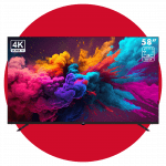 El televisor JVC de 58 pulgadas con resolución 4K Ultra HD que ofrece una experiencia visual inmersiva gracias a su tecnología HDR. Con Google TV integrado, este televisor te permite acceder a una amplia variedad de aplicaciones de streaming y contenido en línea.