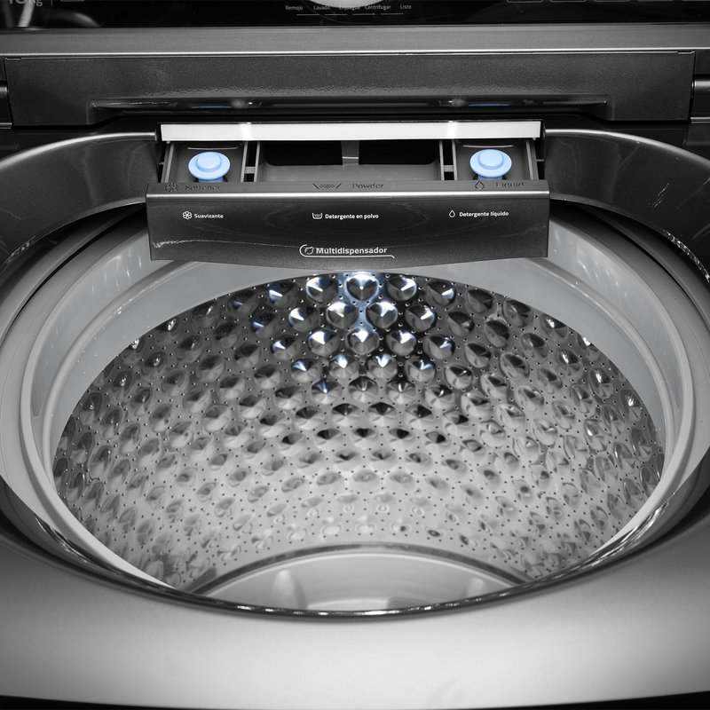 - Opciones Avanzadas: Ofrece la función de Inicio Diferido para programar el ciclo de lavado y un Dispensador Triple para detergente, blanqueador y suavizante.