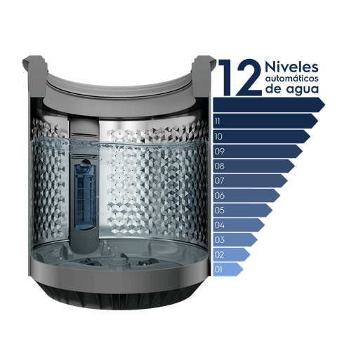 Función Ahorro: Reduce el consumo de agua en hasta en un 40% por cada ciclo de lavado.