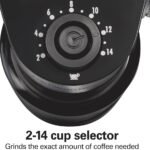- El selector de 2 a 14 tazas te permite moler la cantidad exacta de café que necesitas.