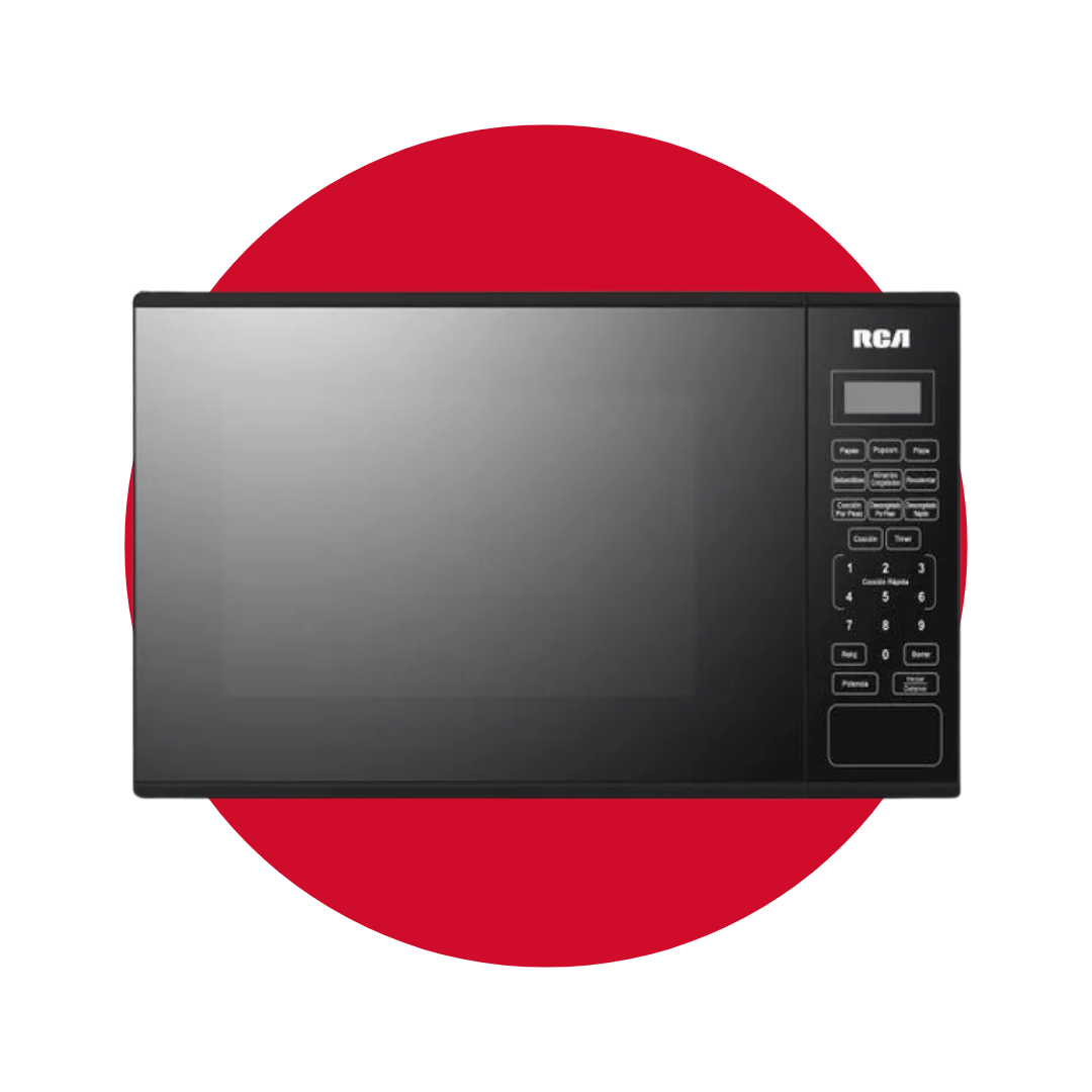 Microondas RCA de 20 litros con diseño elegante en color plateado (silver) y puerta de vidrio tipo espejo. Ideal para calentar, descongelar y cocinar alimentos rápidamente gracias a sus 700W de potencia, 10 niveles de ajuste y 6 programas automáticos. Incluye funciones de seguridad como bloqueo para niños y panel digital intuitivo.
