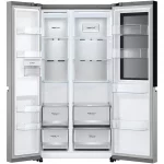 Refrigeradora Side by Side LG con tecnología avanzada y diseño moderno. Cuenta con InstaView™, que permite ver el interior con solo dos toques sin abrir la puerta, y Multi Air Flow para mantener la frescura en todas las zonas. Incluye DoorCooling para un enfriamiento uniforme, ThinQ™ para control remoto y monitoreo, y un Smart Inverter Compressor™ con 10 años de garantía. Con Fresh Balancer™ y Fresh Zone, mantiene frutas y verduras frescas, y tiene una eficiencia energética clase A. Sus dimensiones son 91.3 cm de ancho x 179 cm de alto x 73.5 cm de profundidad, y tiene un peso de 132 kg.