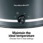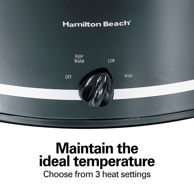La olla de cocción lenta Hamilton Beach® de 8 cuartos con reposa tapas facilita servir y almacenar. El reposa tapas integrado la mantiene firmemente en su lugar, así que no tienes que sujetarla ni quitarla mientras sirves. El reposa tapas también funciona como enrollacables para un almacenamiento ordenado. El tamaño extragrande de 8 cuartos de galón de la olla de cocción lenta es perfecto para comidas abundantes, ya sea que estés preparando chili para el día del partido, entreteniendo a amigos o saciando el apetito de una familia numerosa. La olla de cerámica ovalada tiene capacidad para un pollo de 8 lb o un asado de 6 lb y sirve para más de 10 personas. Es un tamaño ideal para preparar grandes porciones de todas tus comidas favoritas, desde chili y guisos hasta pastas y postres. Con controles manuales sencillos y 3 configuraciones de calor, cocinarás fácilmente comidas deliciosas con el mínimo esfuerzo, ya seas nuevo en la cocina o un chef casero experimentado. Cocina tu comida en baja o alta temperatura, y luego cambia a mantener caliente al finalizar la cocción para mantener la temperatura ideal hasta que llegue la hora de comer. Con asas de agarre firme, la olla de cocción lenta es cómoda y fácil de agarrar para llevarla a la mesa o a una comida compartida. La olla de cerámica extraíble y la tapa de vidrio son aptas para lavavajillas.