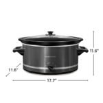 La olla de cocción lenta de 8 cuartos de galón cuenta con una olla ovalada de cerámica de gran capacidad que permite preparar una variedad de alimentos, desde chili o estofado hasta cortes grandes de carne. Tiene capacidad para un pollo de 8 lb o un asado de 6 lb. Sirve para más de 10 personas.