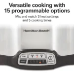 Fácil de limpiar: esta olla de cocción lenta Hamilton Beach tiene una vasija de cerámica extraíble y una tapa de vidrio que son aptas para lavavajillas, y el panel táctil se limpia fácilmente.