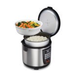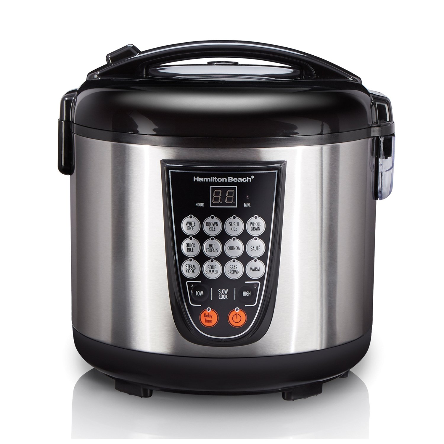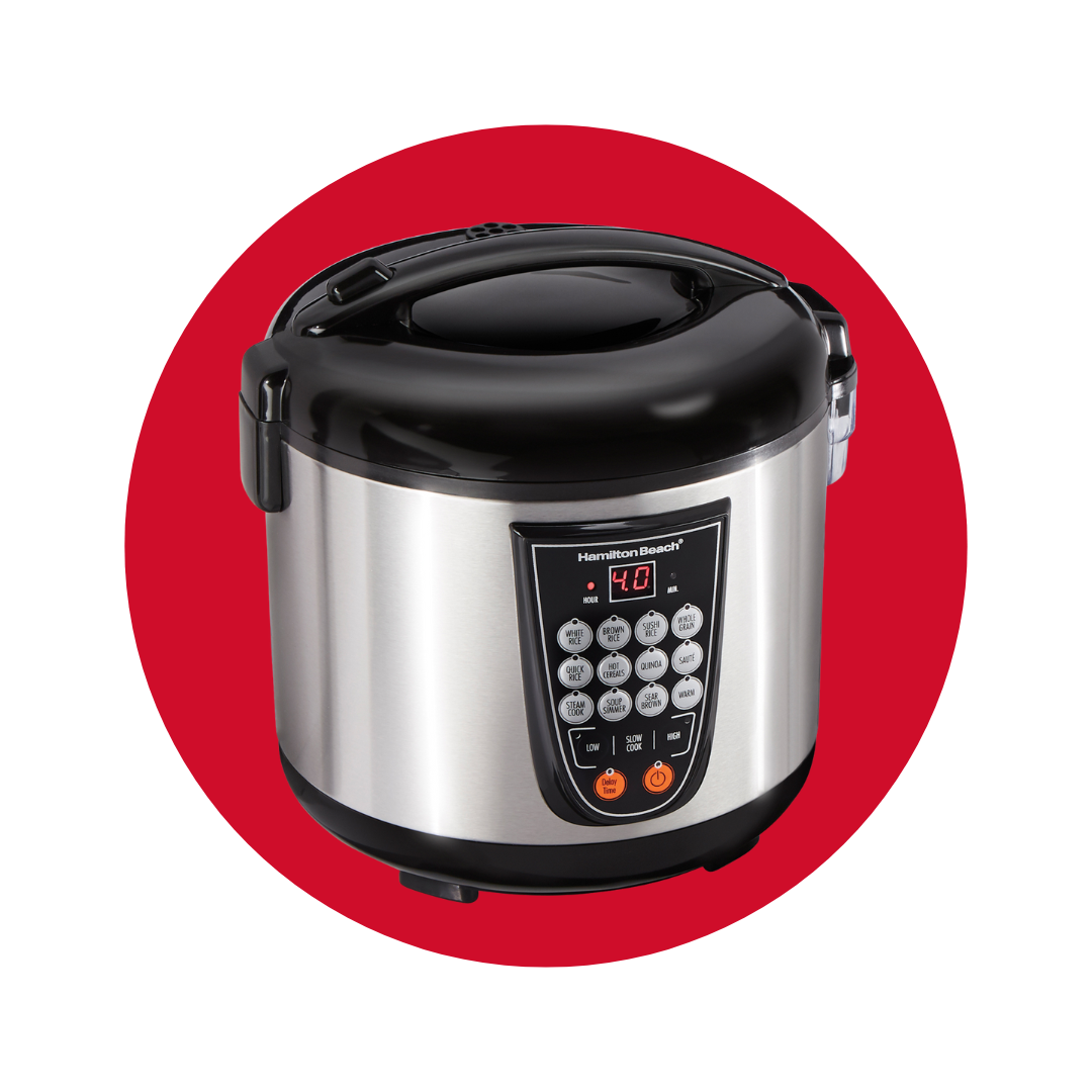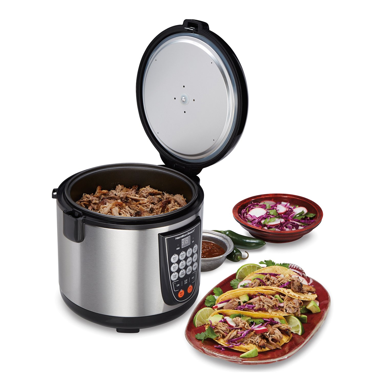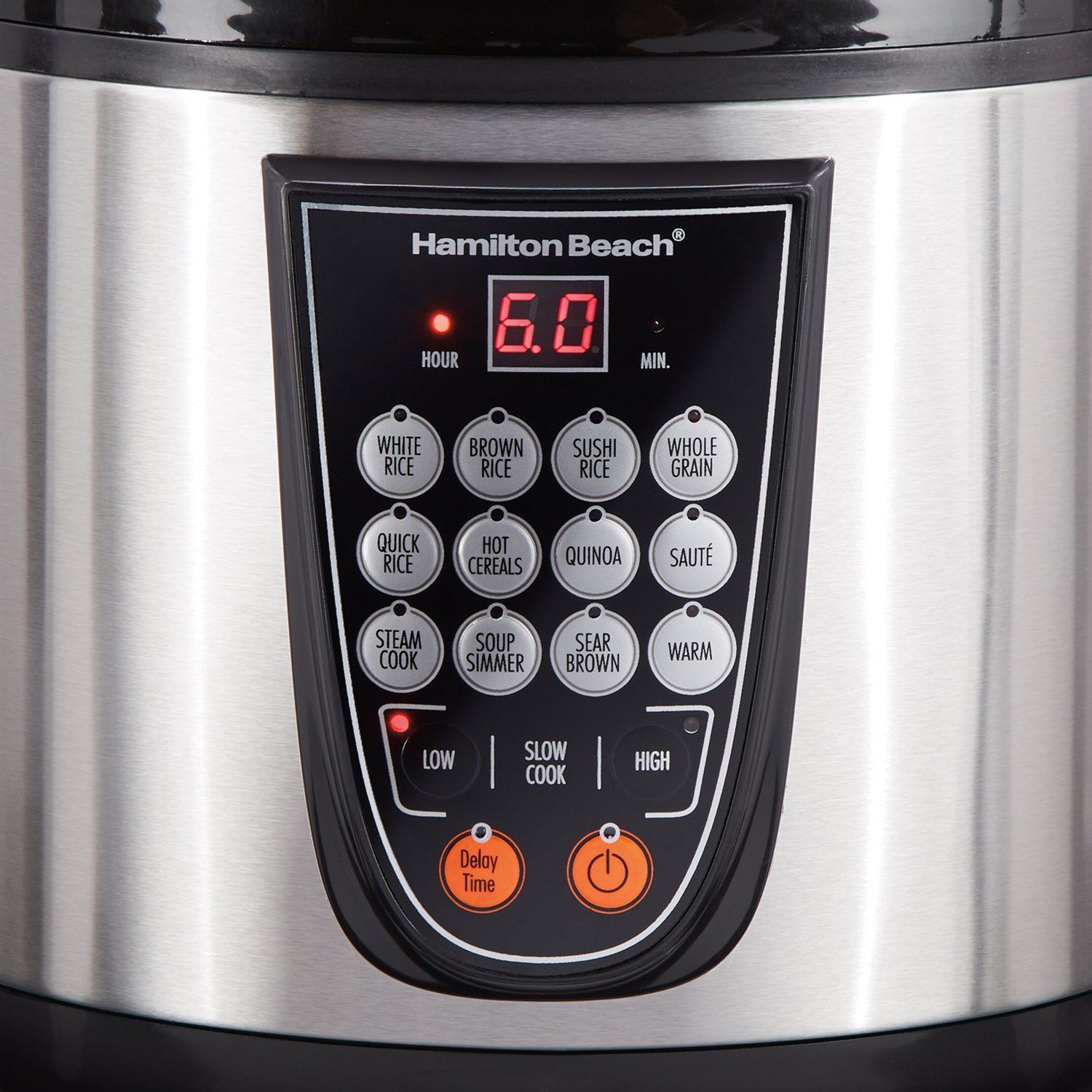 La Olla Multifunción Hamilton Beach 37571 es un electrodoméstico digital versátil con capacidad de 4.2 litros, ideal para cocinar arroz, cocción lenta, cocer al vapor y más. Incluye 14 funciones programables, inicio con retraso y modo automático «mantener caliente». Perfecta para preparar comidas saludables con facilidad.