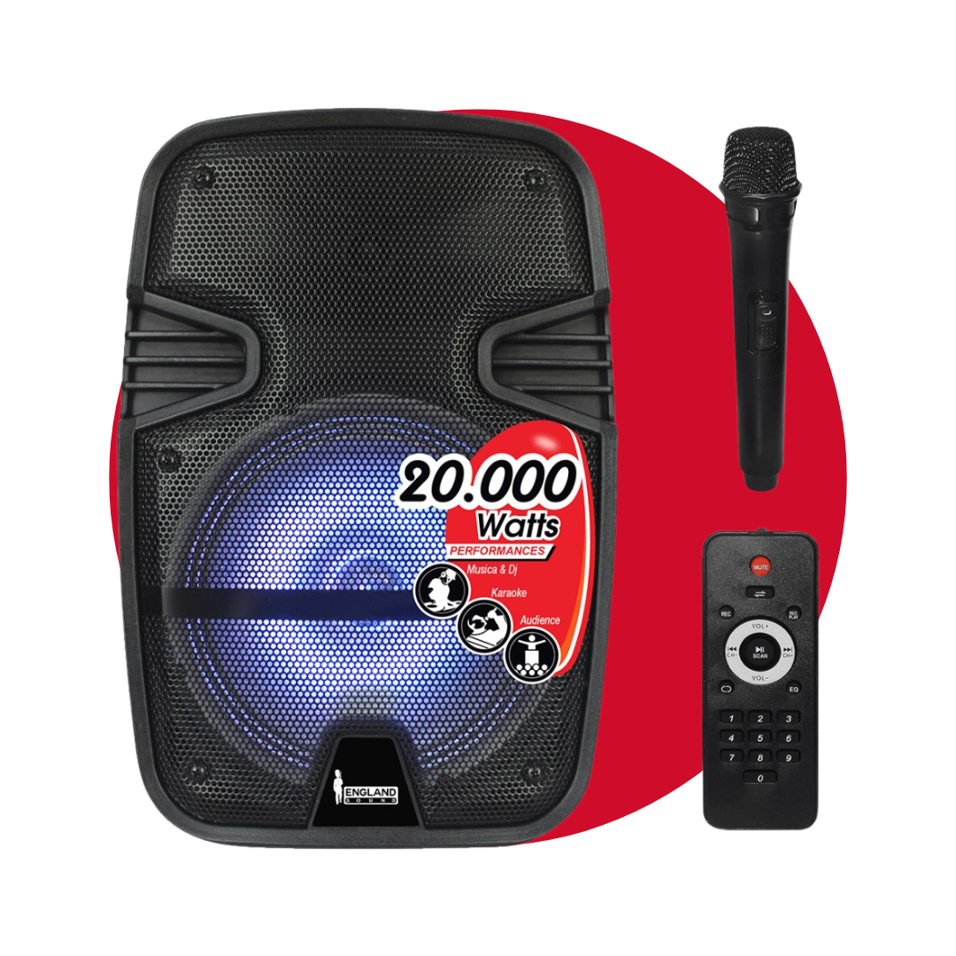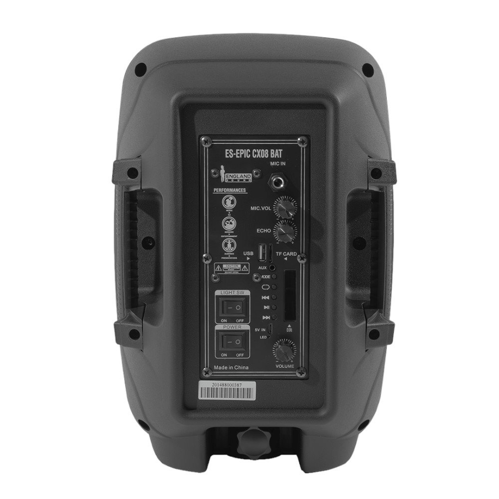 El Parlante ENGLAND SOUND ES-EPIC CX08 BAT 8″ 20.000W PMPO es el compañero ideal para tus eventos y actividades al aire libre. Con su potente sonido y versatilidad, este parlante portátil ofrece una experiencia auditiva incomparable, gracias a su diseño ligero y funcionalidad avanzada.