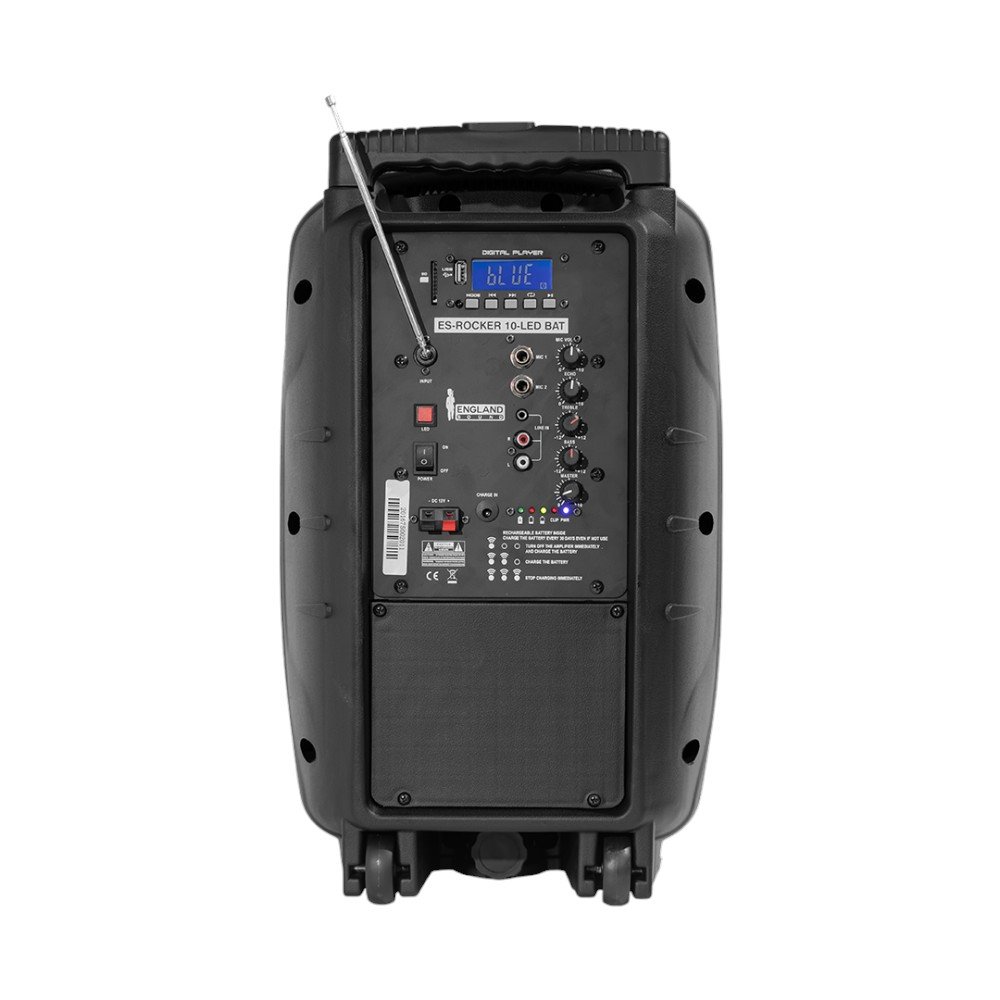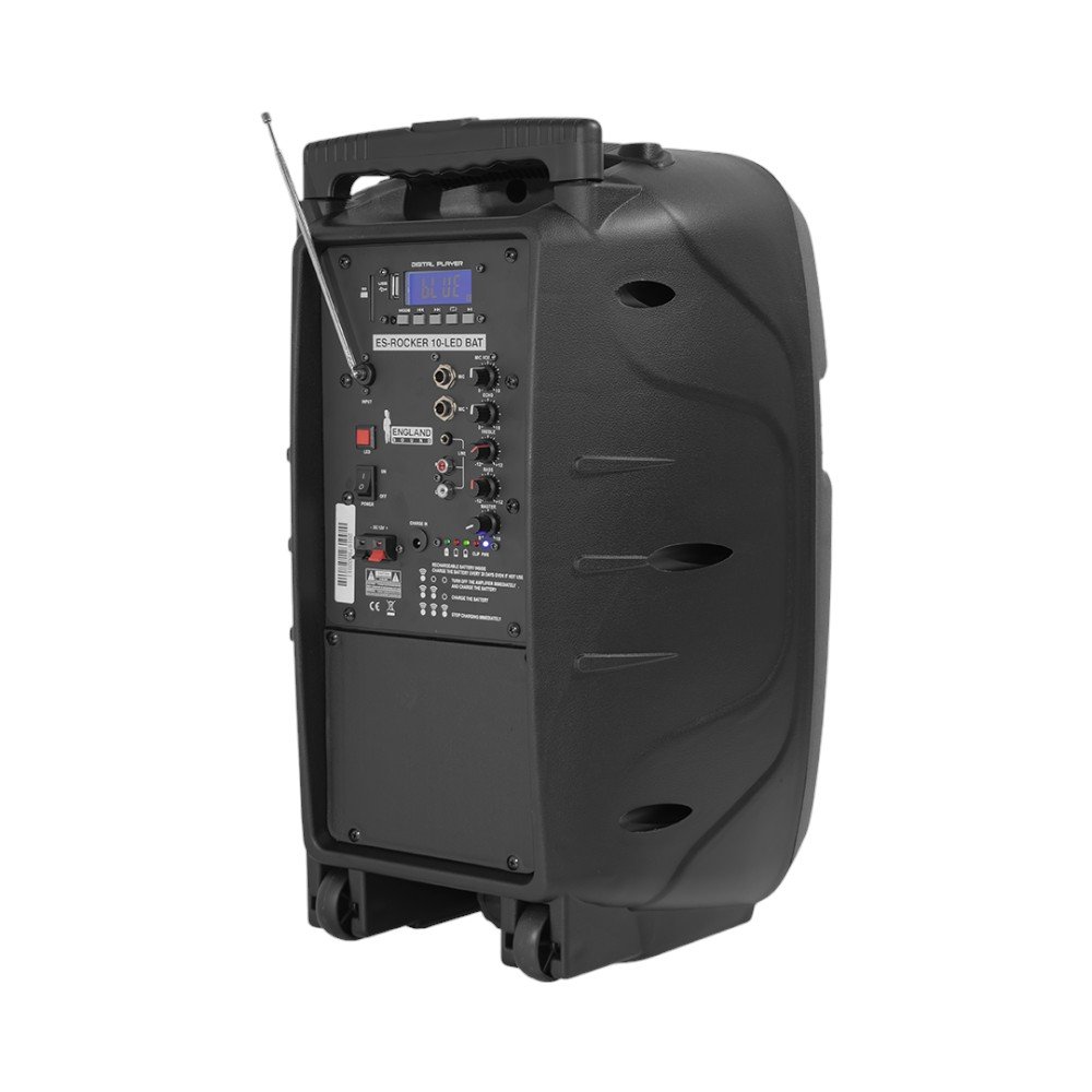 Disfruta de una experiencia auditiva excepcional con el Parlante ENGLAND SOUND ES-ROCKER 10-LED-BAT. Con una potente salida de 50W RMS y una capacidad máxima de 30.000W PMOP, este parlante de 10″ y 2 vías proporciona un sonido claro y vibrante para cualquier ocasión. Su diseño portátil y batería recargable integrada te permite llevar la fiesta a donde quieras, mientras que las luces LED multicolor agregan un ambiente festivo único.