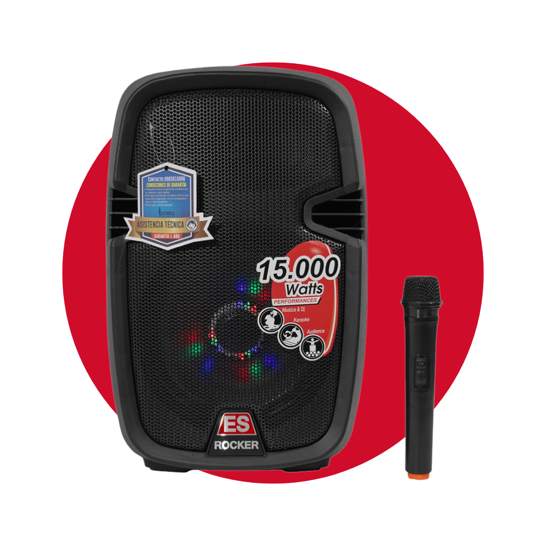 - Parlante portátil de 10″ ideal para fiestas.