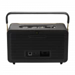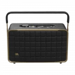 El JBL Authentics 300 combina un diseño retro inspirado en los años 70 con tecnología moderna, ofreciendo un sonido potente de 100W, conectividad Wi-Fi y Bluetooth, asistentes de voz integrados (Google Assistant y Alexa), y una batería recargable para disfrutar de la música en cualquier lugar de tu hogar.
