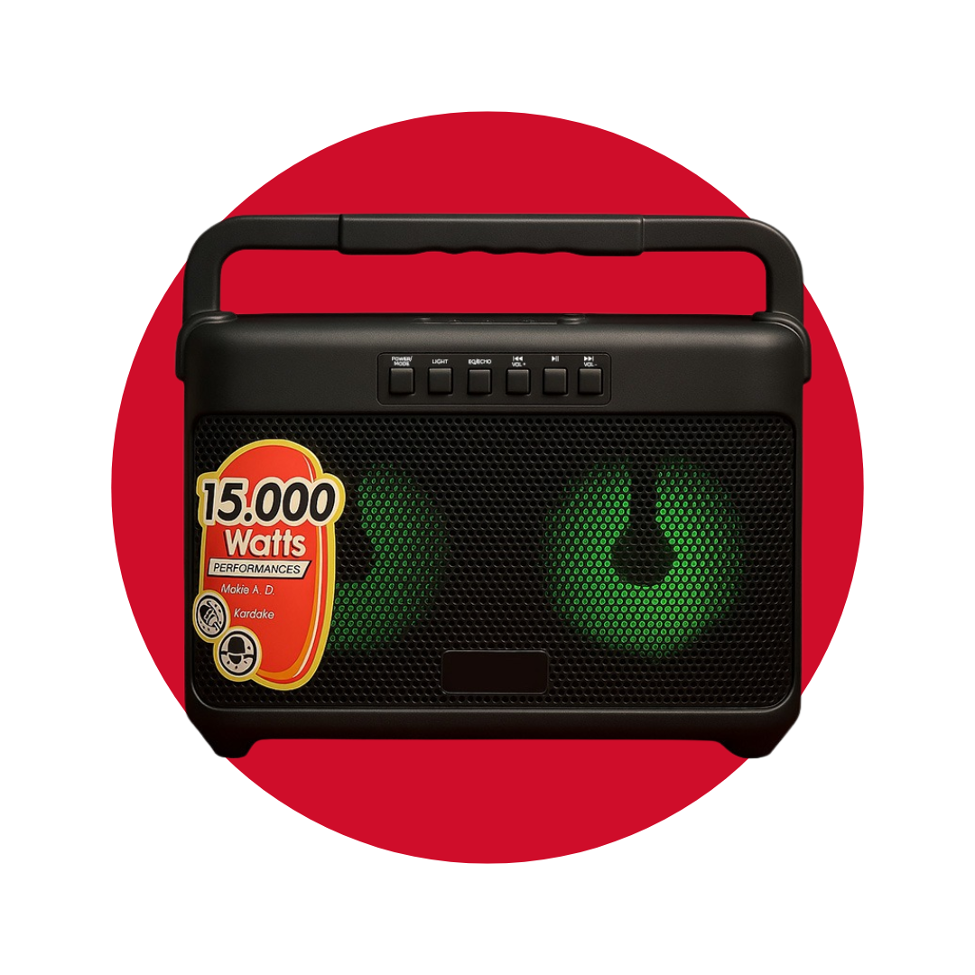 -Caja Amplificada con Batería 2×4″ -Reproductor Analógico/Digital -Entrada 3.5 mm -Luz LED RGB