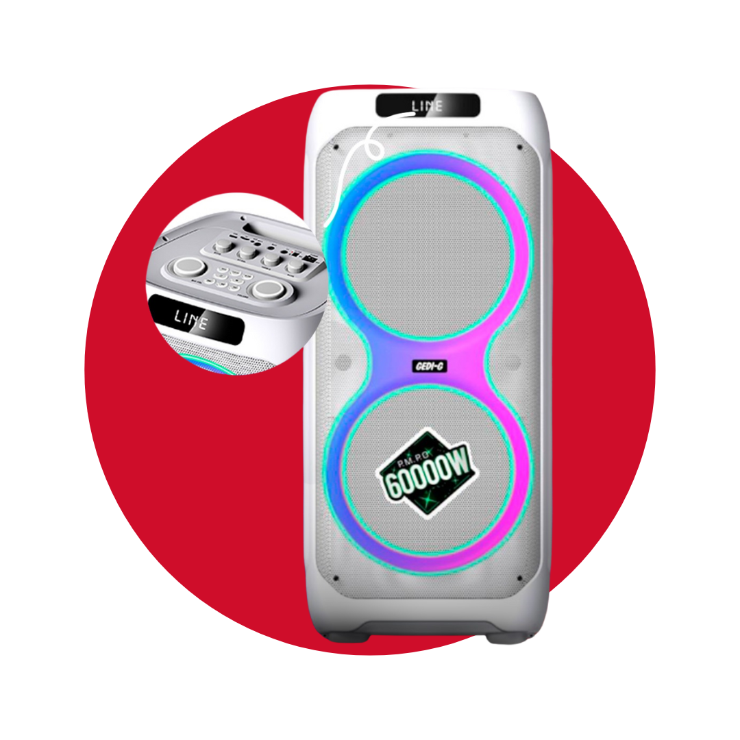 -Bluetooth -Canal stereo -Parlante 12*2″ -Conexion MP3 -Panel digital -Microfono -Control remoto