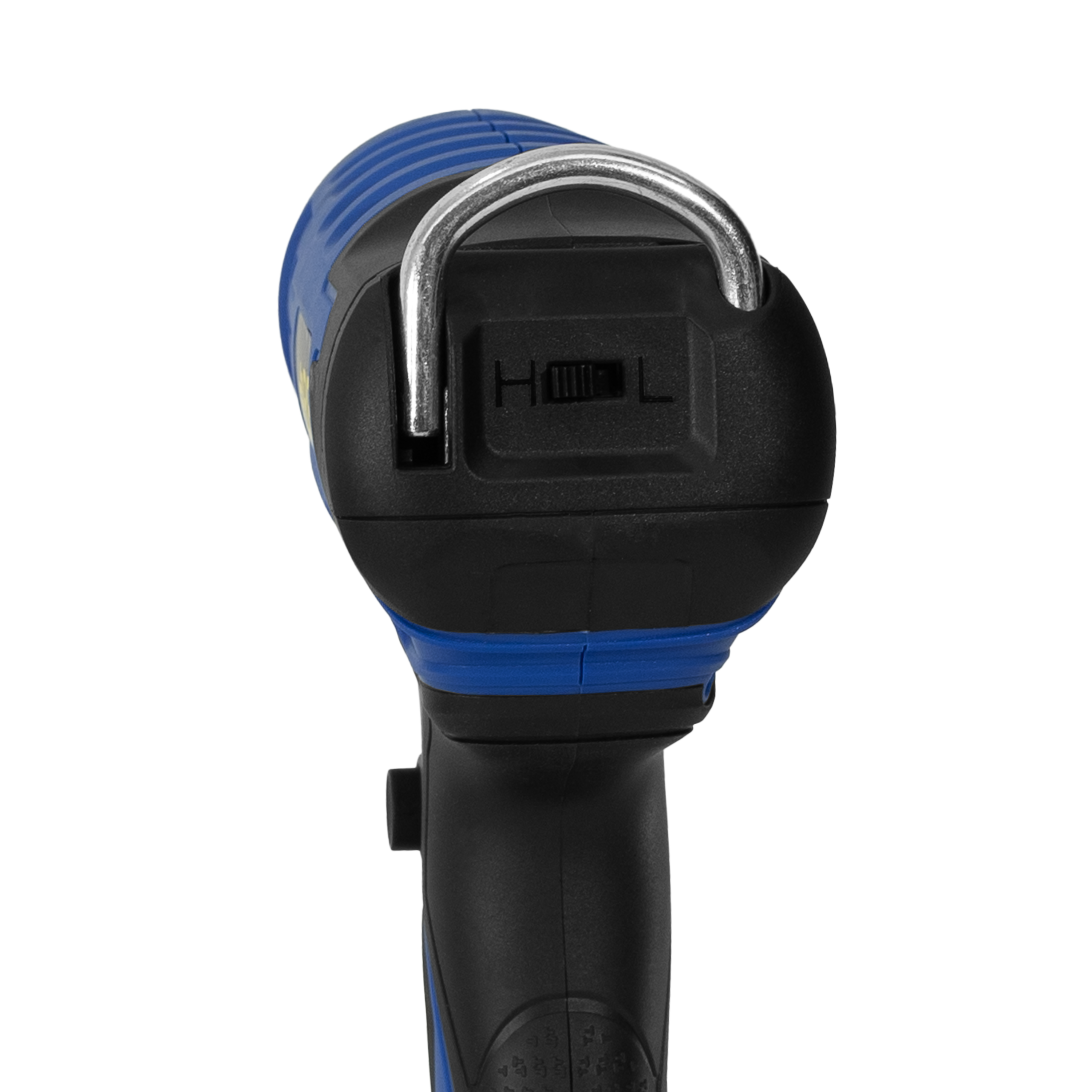 - Su interruptor de bloqueo ayuda a reducir la fatiga, eliminando la necesidad de mantener presionado el switch de encendido durante largos periodos.