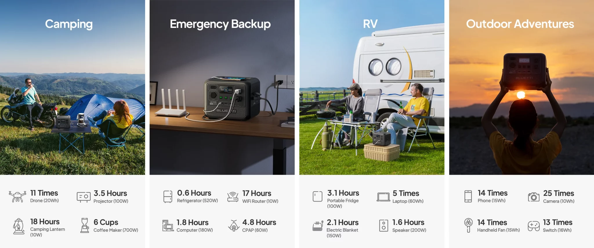 - 6 formas de recarga: Flexible para cargarse mediante CA, energía solar, automóvil, generador, batería B80 o CA + energía solar dual;