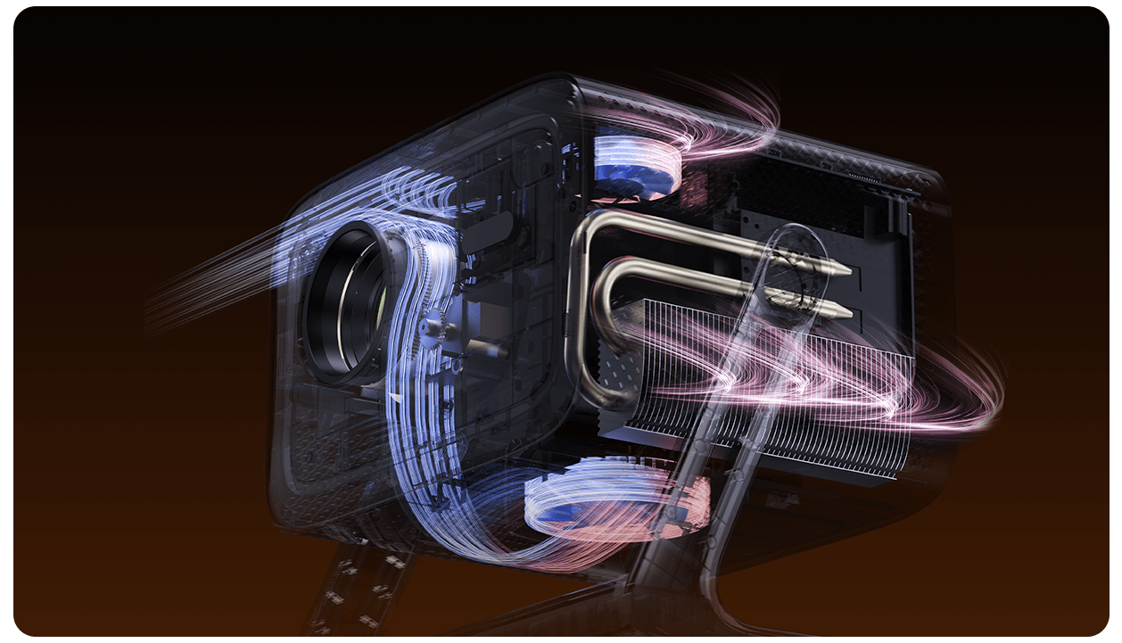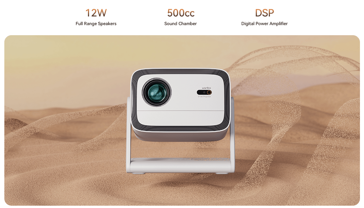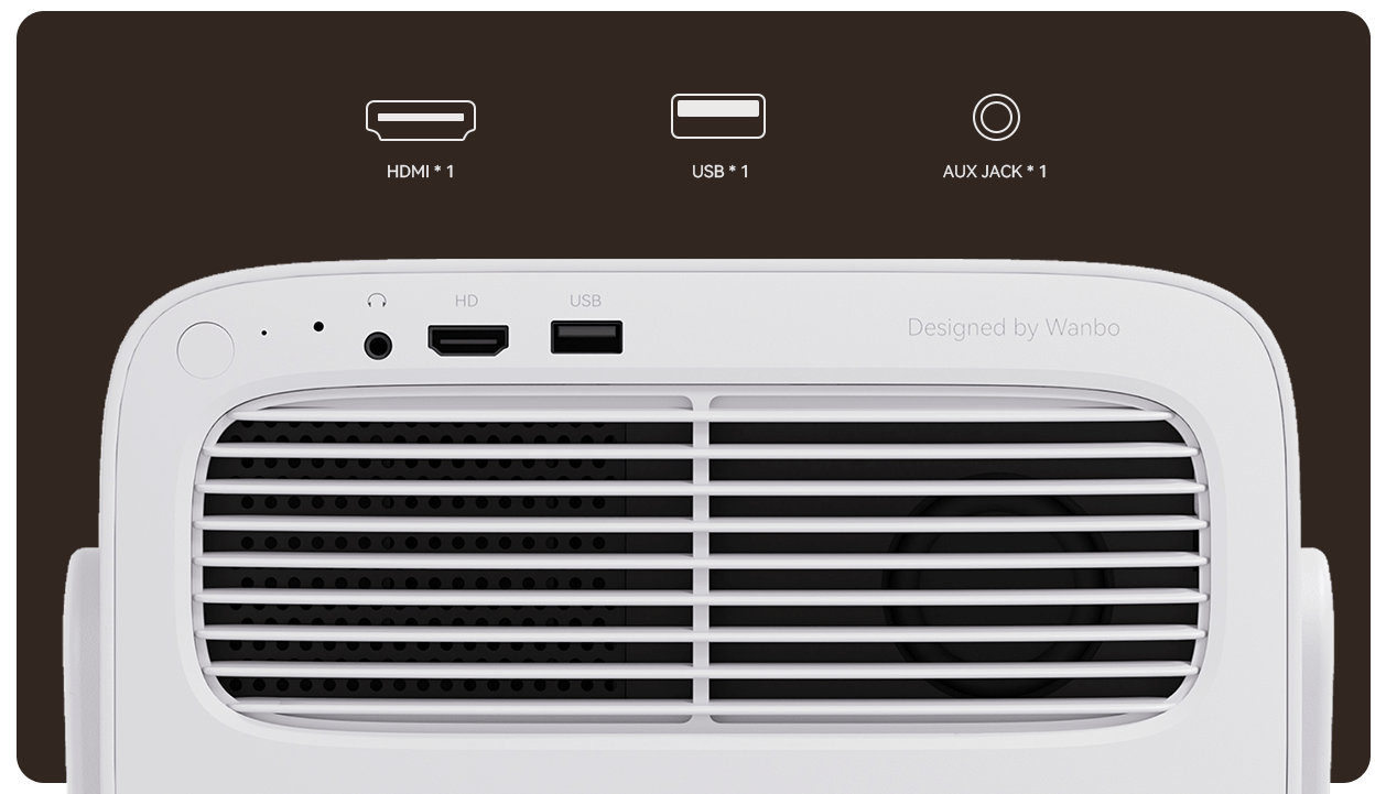Vali 1 tiene el ventilador de refrigeración más grande entre todos los proyectores Wanbo, de 10 cm de diámetro y 3,3 cm de altura, lo que mejora en gran medida la eficiencia de disipación de calor y reduce eficazmente el ruido de funcionamiento.