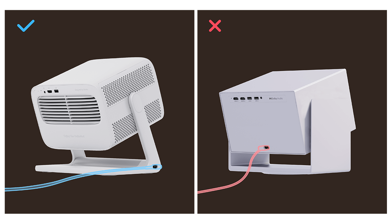 Equipado con un soporte integrado flexible, es fácil ajustar el ángulo de proyección a su gusto, incluso en el techo.