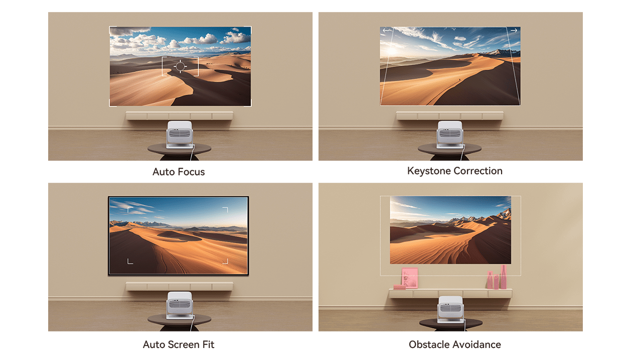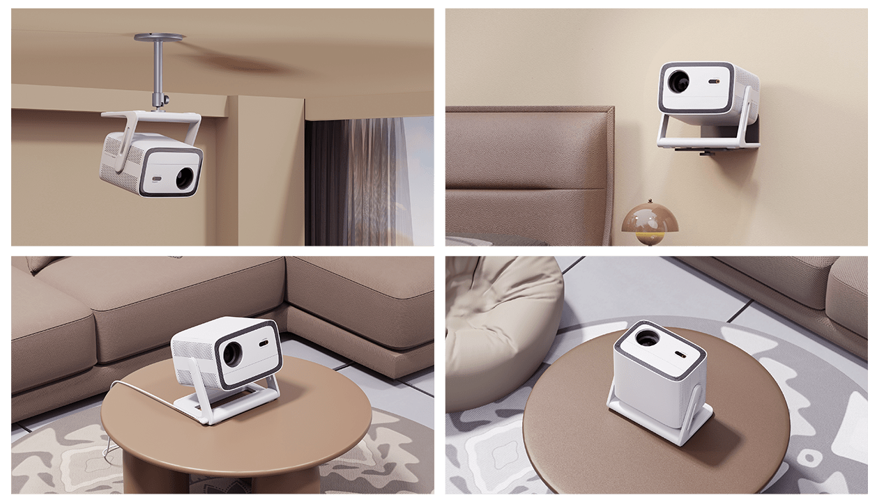 El proyector admite montaje en techo, montaje en pared, soporte de suelo, etc., lo que permite desbloquear más ángulos de visión.