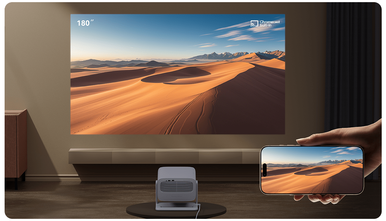 La transmisión inalámbrica es muy fácil: conecte y muestre contenido instantáneamente desde teléfonos inteligentes, tabletas y computadoras portátiles compatibles para disfrutarlo sin interrupciones en una pantalla grande.