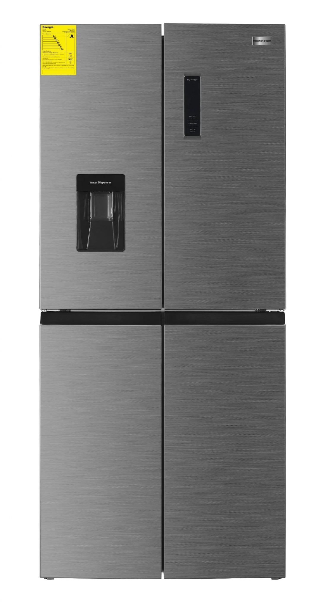 Refrigeradora Hamilton Beach 398 LITROS Doble Puerta Cromada