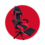 Silla gamer ergonómica y ajustable, diseñada para brindar comodidad y soporte durante largas sesiones de juego o trabajo. Cuenta con un marco y chasis de acero, materiales de alta calidad como cuero de PU y tela de PVC, y funciones como reclinado hasta 155°, altura ajustable, reposabrazos y cojines de cuello y cintura móviles.
