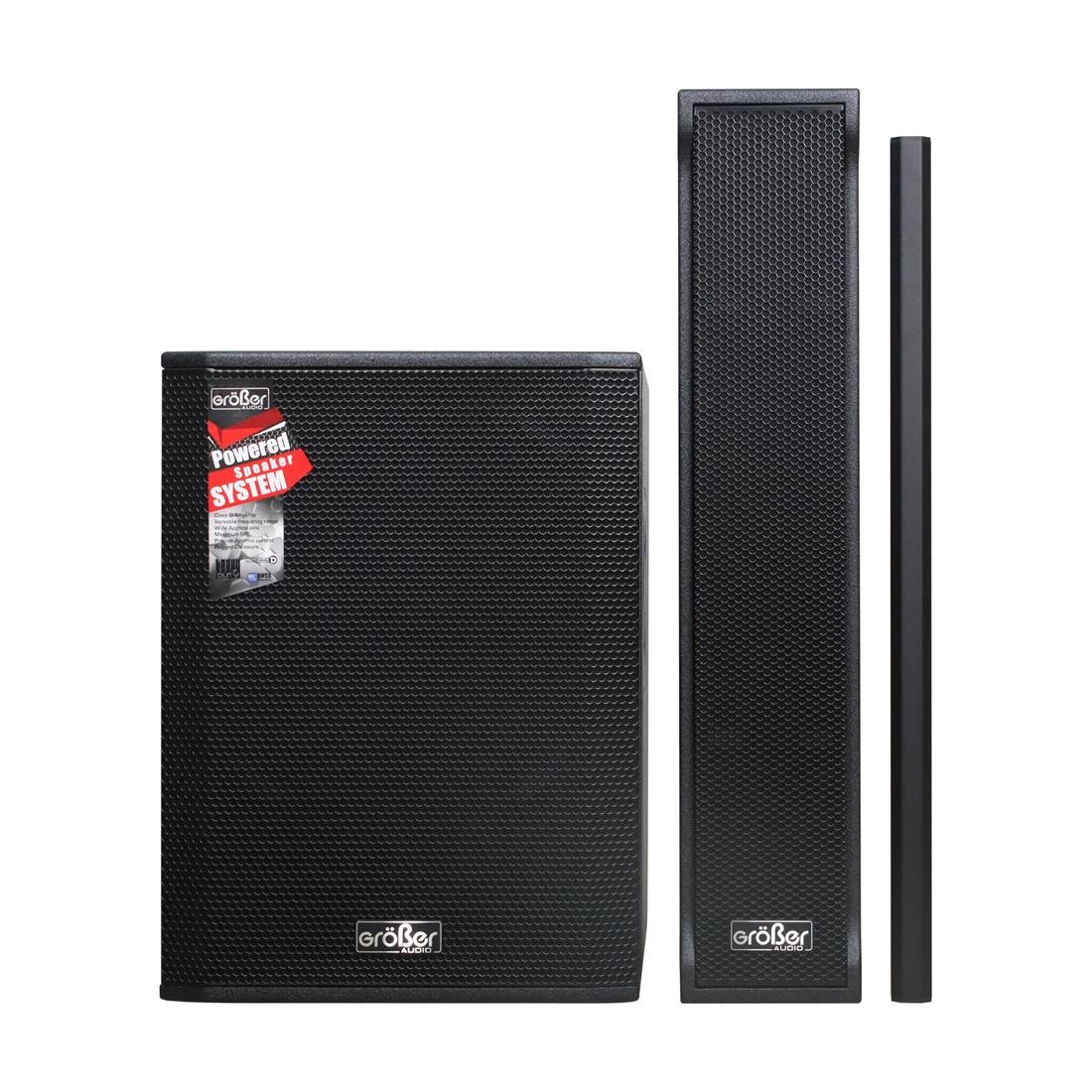 El SISTEMA ACTIVO GROBER OPERA-SERIE es una solución de audio profesional tipo columna con 1200W RMS de potencia. Combina un potente subwoofer de 15″ con un satélite de 4 parlantes de 5″ y un driver de neodimio, todo construido en madera con acabado de poliurea. Es el equipo ideal para eventos corporativos, bodas y DJs que buscan una dispersión de sonido uniforme y un diseño sofisticado.