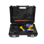 - Incluye: Puntas – Estrella – Plana – Tork (9) , Broca Madera (3), Broca Metal (3), Broca Cemento (3), Extensión Flexible (1), Estuche plástico (1),