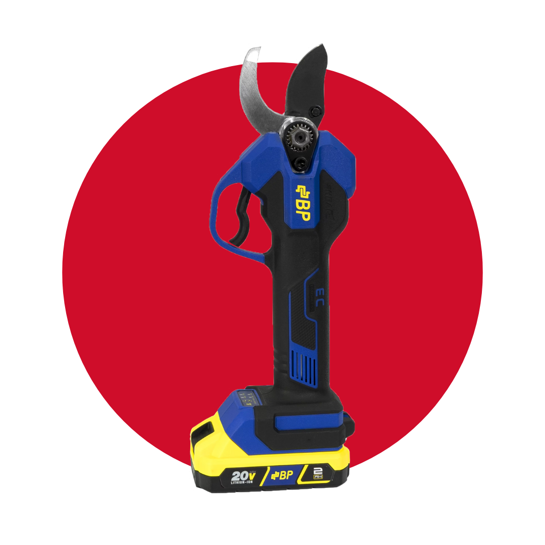 - Incluye: (1) tijera de podar, (2) baterías, (1) cargador (1) llave hexagonal, (1) llave, (1) piedra de afilar, (1) aceite lubricante, (1) bolso para transporte de herramientas.