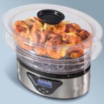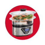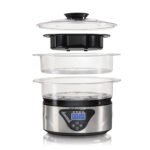 Una vez que pruebes la vaporera, seguramente ganará un lugar permanente en tu cocina porque es muy versátil y fácil de usar. Llénala con agua, coloca uno o dos de los tazones transparentes llenos de comida sobre la base y ajusta el temporizador de cocción. Podrás completar otras tareas cuando la comida se cocina al vapor, porque cuando tu comida está lista, suena un pitido y automáticamente se calienta durante una hora.