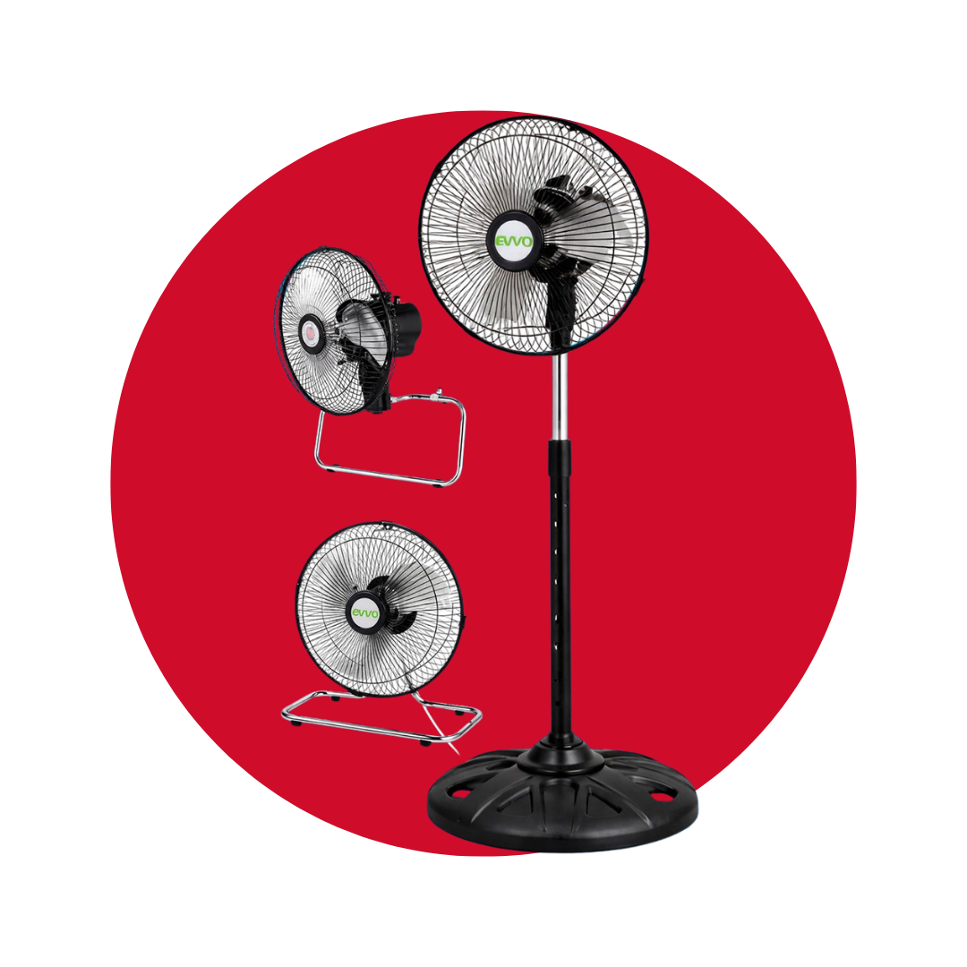 El VENTILADOR EVVO 3 EN 1 es la solución ideal para quienes buscan versatilidad y eficiencia en el enfriamiento. Este ventilador de 10 pulgadas es perfecto para cualquier espacio, ofreciendo tres modos de uso: pedestal, pared y mesa. Con su diseño compacto, se adapta fácilmente a diferentes entornos, ya sea en casa, oficina o durante actividades al aire libre.